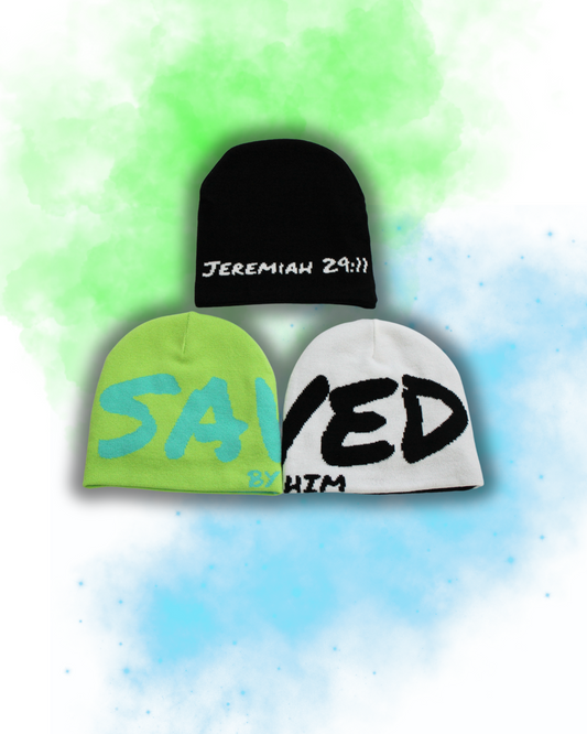 SAVED BY HIM BEANIE (GREEN/BLUE)
